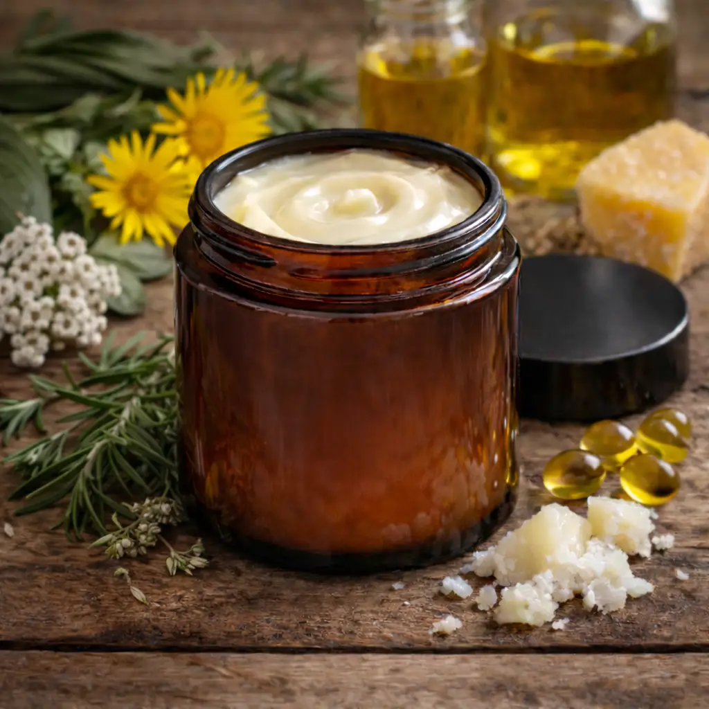 Plantain and dandelion have long been valued in folk practices for supporting tissue comfort, while yarrow contributes soothing qualities for worked areas. Rosemary adds a gently stimulating note that supports circulation without creating heat, making this salve well suited for hands, knees, hips, and other frequently used joints.